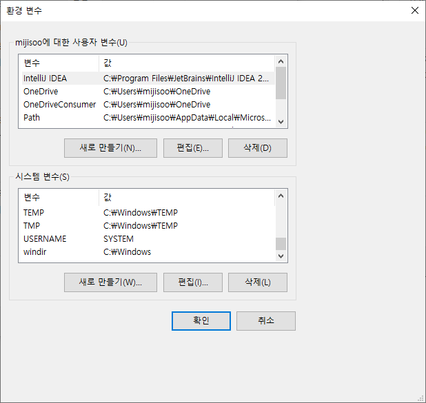 환경 변수 등록 후 정상 등록 되었는지 확인