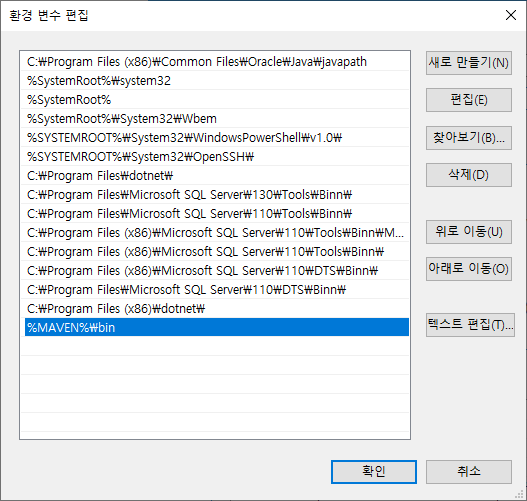 이름은 MAVEN 변수 값은 압축해제 위치를 입력합니다.