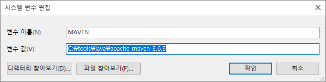 저는 c:\tools\java\apache-maven-3.6.3 위치에 두었습니다.
